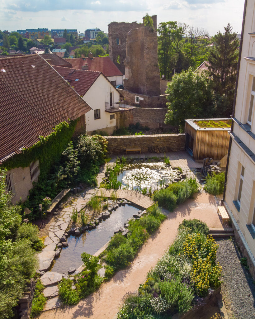 Do geoparku vstoupíte z náměstí průchodem v budově školy. Zahrada vás zaujme na první pohled svou kompozicí a neobvyklým průhledem na říčanský hrad.
