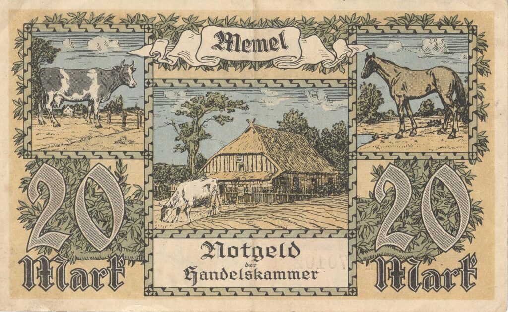 Na snímku je nouzovka memelské obchodní komory z roku 1922, používaná v tehdejším Východním Prusku.