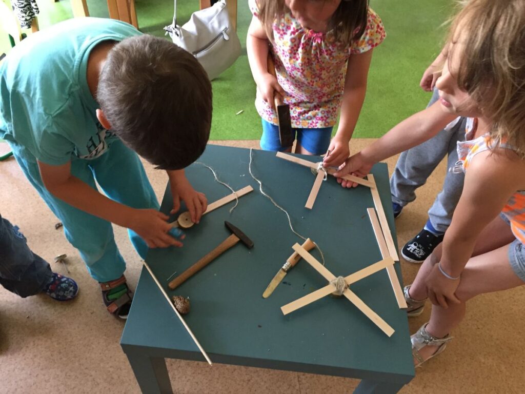 Výuka probíhá formou workshopu v délce 4 vyučovacích hodin. Volně navazuje na workshop Úvod do tvořivé hry. Představíme nástroje vhodné pro práci s dětmi (např. pilka, škrabka, nůž…) a bezpečnostní pravidla pro jejich používání. Účastník si práci s nástroji sám vyzkouší a naučí se základní manipulace a návyky. Na příkladech z praxe si ukážeme, jak připravit prostředí třídy nebo zahrady pro práci s nástroji. Jak ukládat materiály, kde a jak vytvořit dílenský kout. Workshop je veden formou diskuze, praktických ukázek a činností.