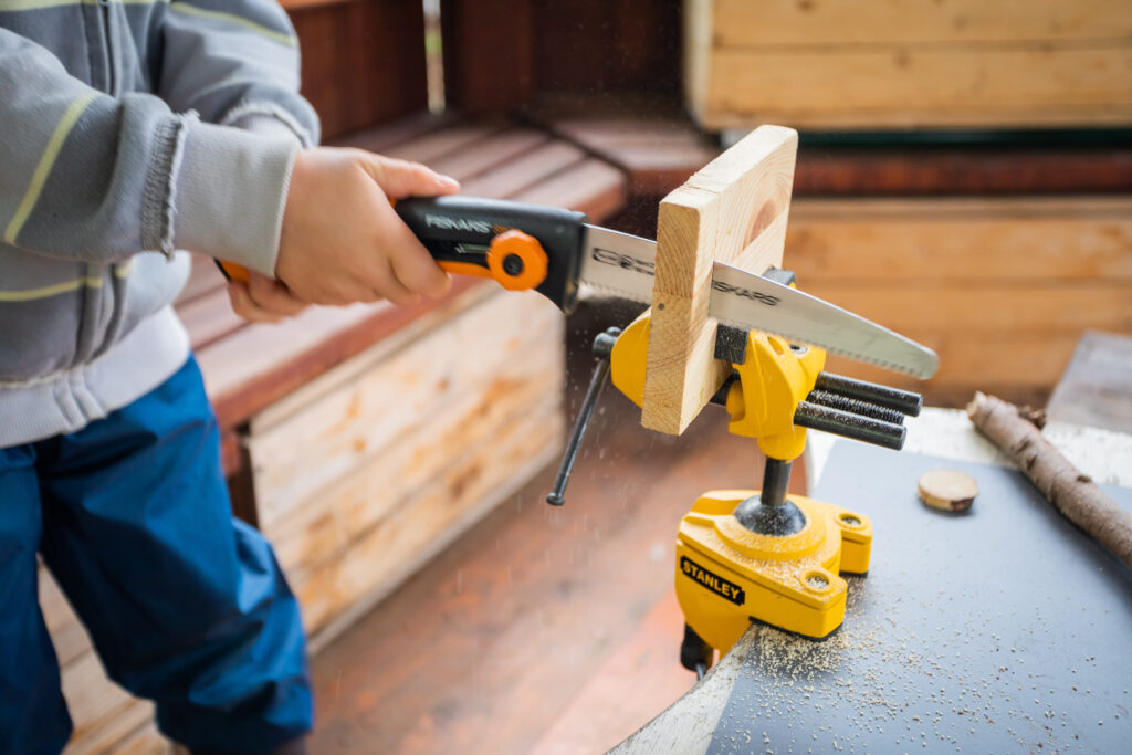 Výuka probíhá formou workshopu v délce 4 vyučovacích hodin. Volně navazuje na workshop Úvod do tvořivé hry. Představíme nástroje vhodné pro práci s dětmi (např. pilka, škrabka, nůž…) a bezpečnostní pravidla pro jejich používání. Účastník si práci s nástroji sám vyzkouší a naučí se základní manipulace a návyky. Na příkladech z praxe si ukážeme, jak připravit prostředí třídy nebo zahrady pro práci s nástroji. Jak ukládat materiály, kde a jak vytvořit dílenský kout. Workshop je veden formou diskuze, praktických ukázek a činností.