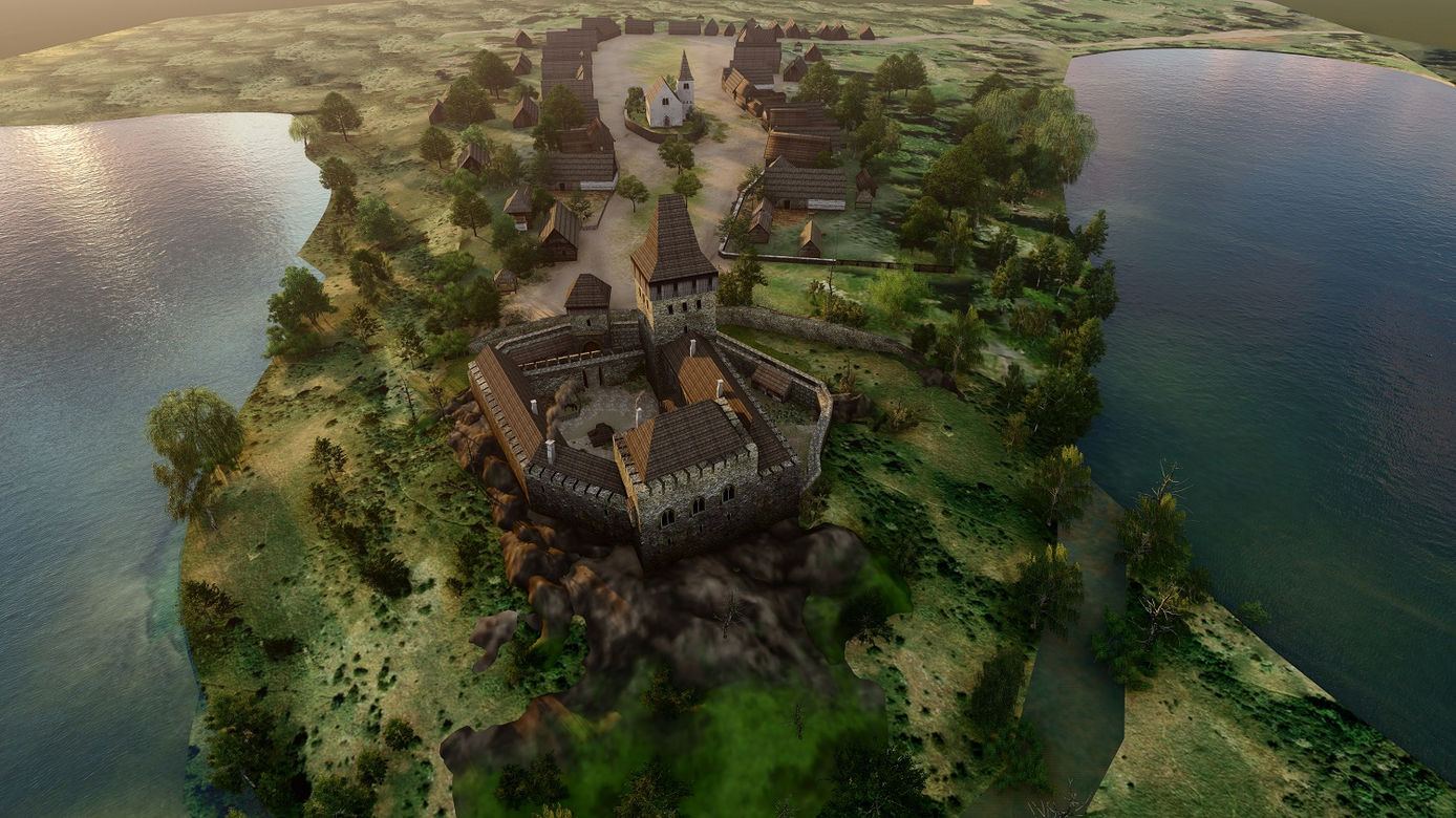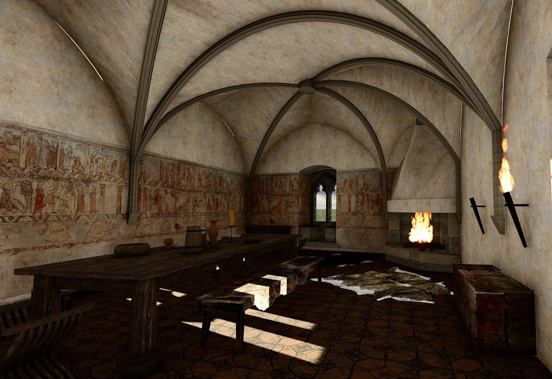 Vizualizace vychází z archeologických nálezů a ze znalostí staveb a vybavení interiéru z jiných středověkých hradů.