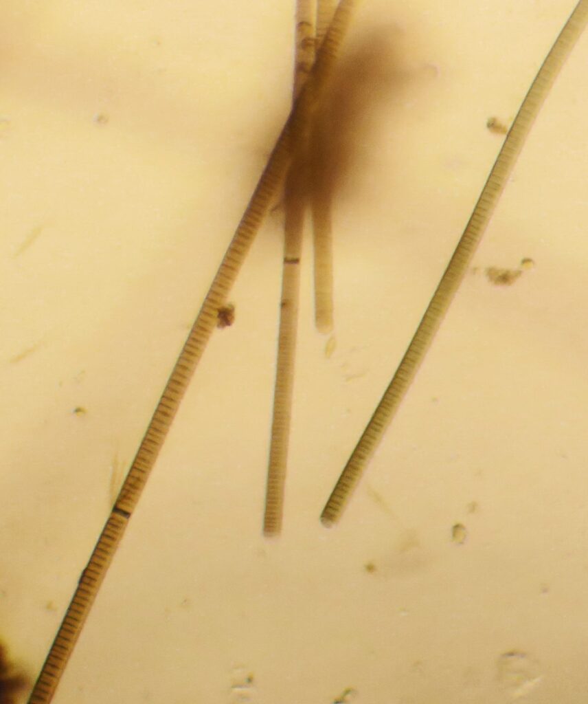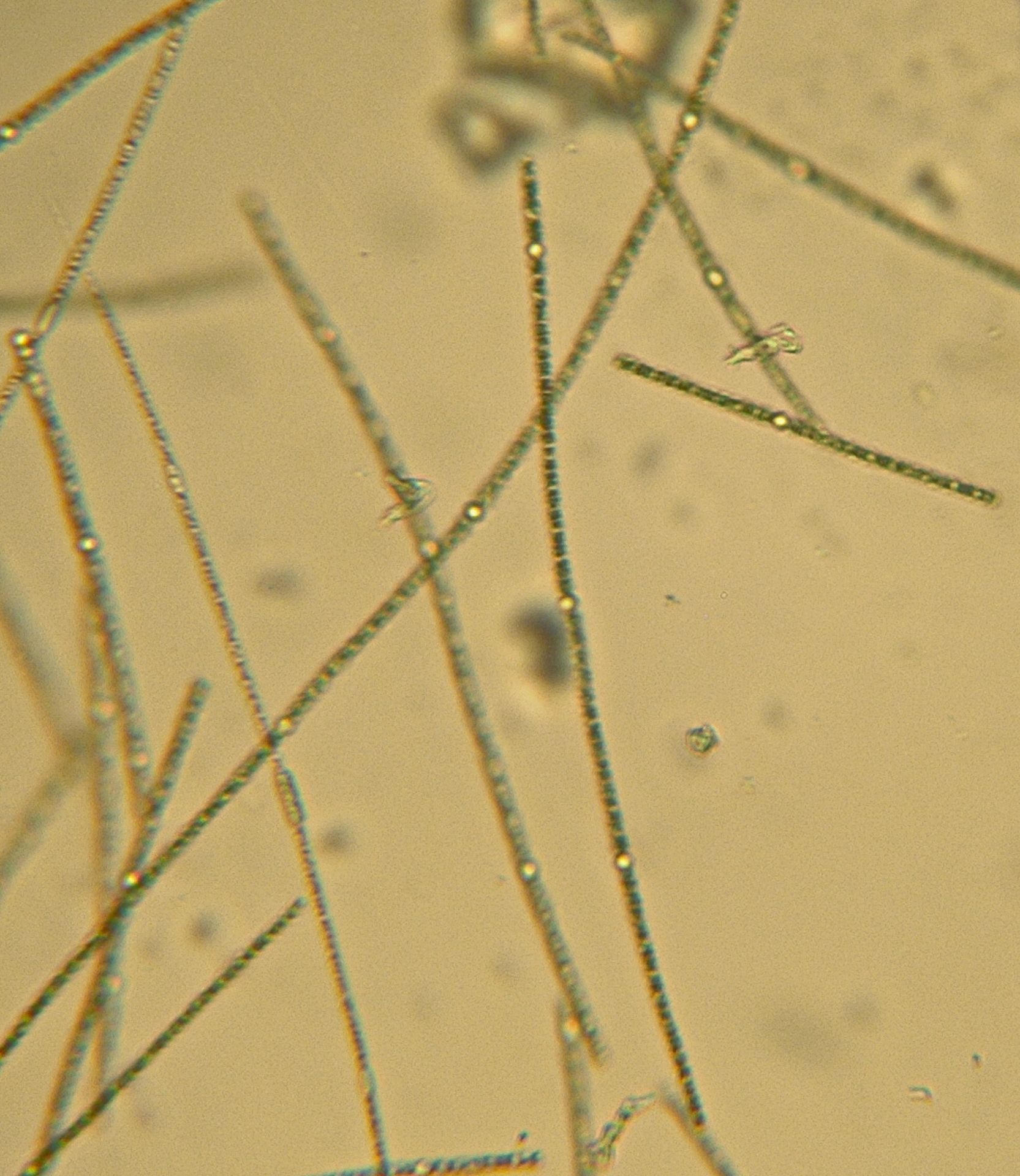 V říčanských rybnících přirozeně a neškodně žijí mj. rody Oscillatoria nebo Dolichospermum zachycené na obrázku. V muzeu je běžně zkoumáme během výukových programů. Nejprve je však děti a učitelé musí nalovit pomocí speciální síťky planktonky.