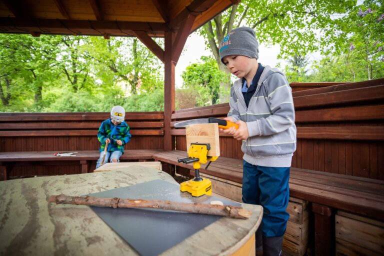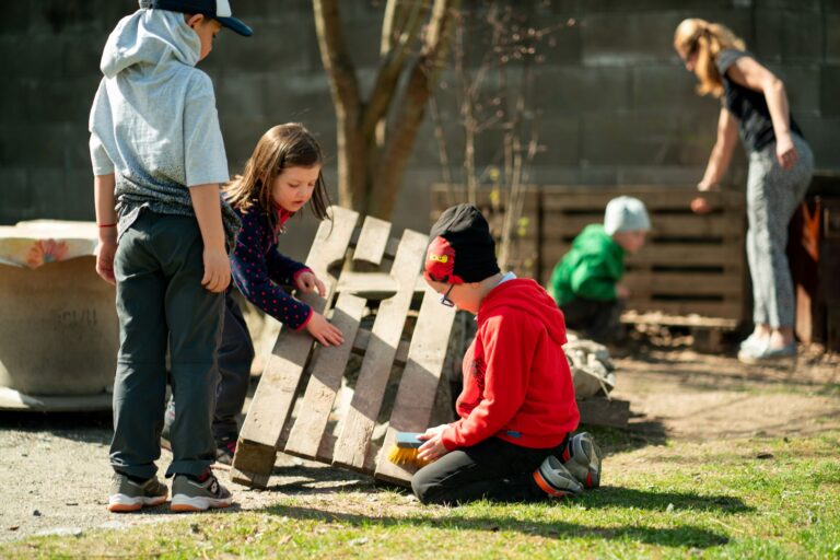 Začněte jednoduchou aktivitou, která vám i dětem udělá radost a dodá motivaci pro další postup. Máte například zahradu, kde „nic není“? Vybavte se košíkem nebo látkovou taškou, kterou budete vždy brát s sebou na vycházky. Děti rády něco sbírají, a tak si z každé procházky donesete zásobu přírodnin pro tvoření. Nebo si nechte přivézt pár palet, které můžete postupně s dětmi rozebírat, rozřezávat a zkoušet na nich zatloukání hřebíků. Velice se osvědčily také balíky slámy, ze kterých děti staví. Úplně obyčejné a jednoduché věci děti baví nejvíc – podněcují je k tvořivosti a děti s nimi zvládnou pracovat samy.