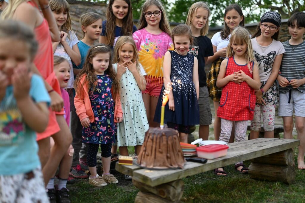 B) delší varianta – s ohništěm: v geoparku budete mít 3 hodiny na na průzkum jeskyně, rýžování granátků, odkrývání pozůstatků pravěkého života v paleontologickém nalezišti, vytvoření sádrových odlitků zkamenělin, gratulace či dort a navíc si ještě v pohodě stihnete opéct něco dobrého nad ohněm.