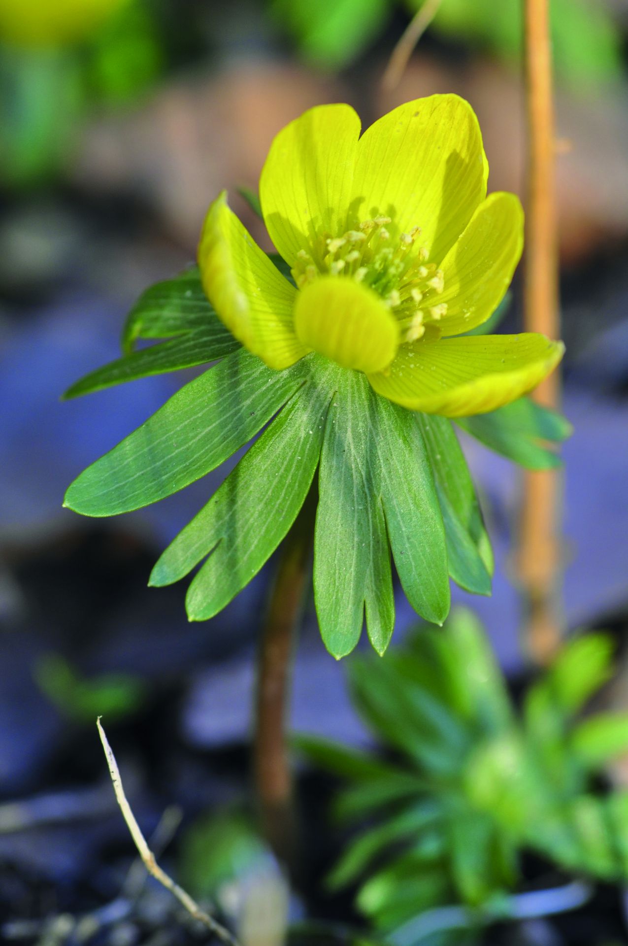 Talovín zimníEranthis hyemalis Koncem zimy, mezi zbytky tajícího sněhu, vystrkuje talovín své žluté hlavičky. Občas sněhem zapadá nebo na několik dní ztuhne vlnou mrazů. Při