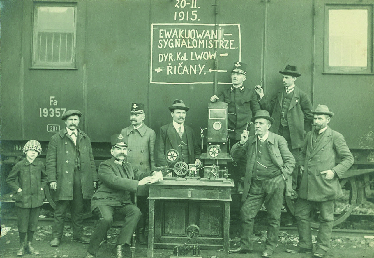 Zajímavá sbírková fotografie má cosi společného s aktuální situací. Fotografie byla pořízena 20. února 1915 na říčanském nádraží a zachycuje skupinu zaměstnanců Rakouských státních drah. Ti byli evakuováni z Východní Haliče před postupující ruskou armádou.